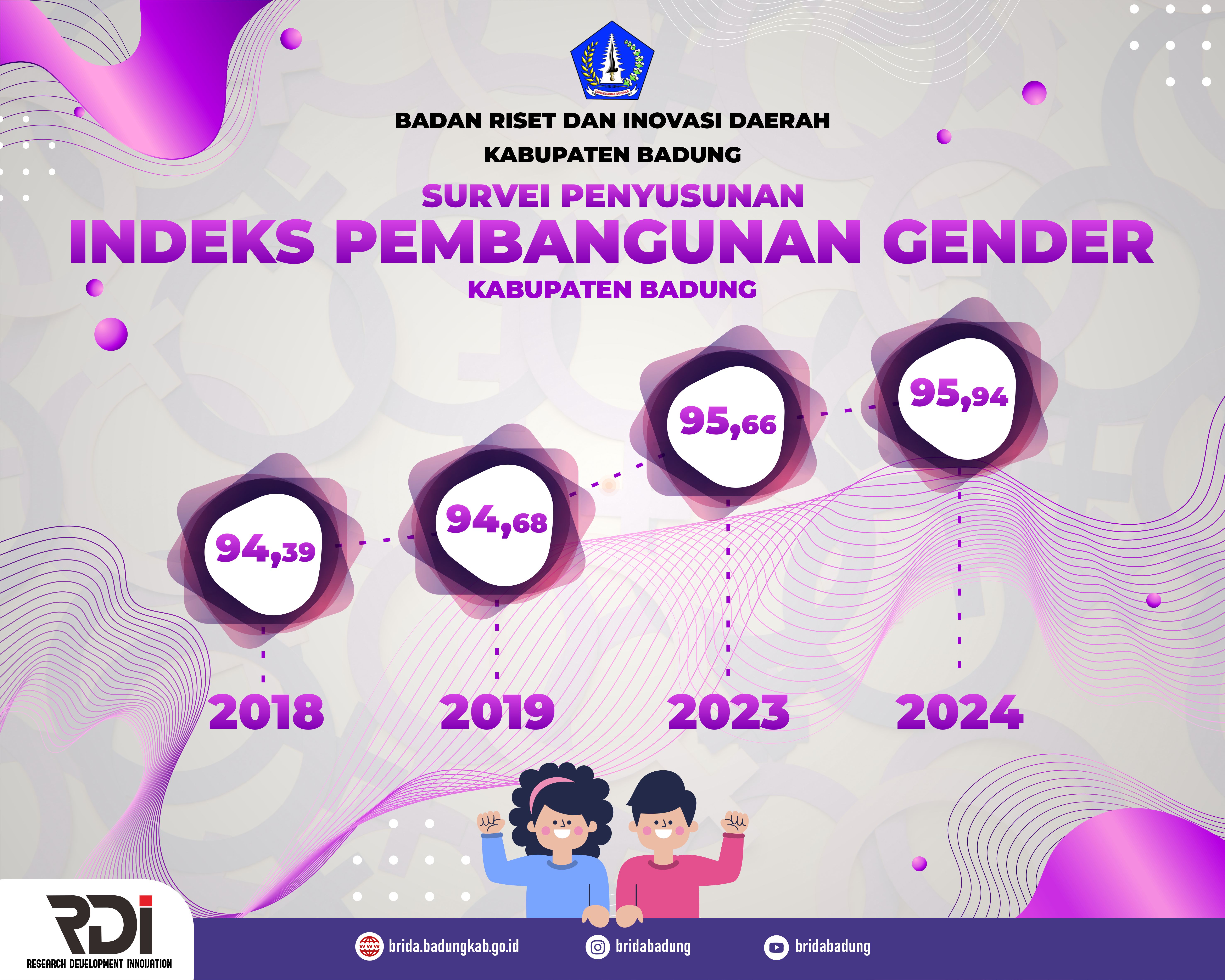 Deskripsi: Kajian “Survei Penyusunan Indeks Pembangunan Gender Kabupaten Badung Tahun 2024” ini mengulas secara mendalam tentang tingkat kesetaraan gender di Kabupaten Badung melalui pendekatan kuantitatif berdasarkan tiga dimensi utama pembangunan manusia: kesehatan, pendidikan, dan ekonomi. Hasil penelitian menunjukkan kemajuan signifikan menuju kesetaraan gender, namun masih terdapat kesenjangan terutama dalam akses ekonomi dan pendidikan. Kajian ini tidak hanya menyajikan data dan analisis mendalam, tetapi juga menawarkan rekomendasi strategis bagi pemerintah daerah untuk mewujudkan pembangunan yang lebih inklusif dan berkeadilan gender. Tujuan dari penelitian ini adalah untuk mengetahui tingkat pencapaian pembangunan manusia berbasis gender yang direpresentasikan oleh Indeks Pembangunan Gender (IPG) tahun 2023, untuk mengetahui kondisi kesenjangan pembangunan manusia antara laki-laki dan perempuan di Kabupaten Badung, untuk menghasilkan indikator komposit dan indikator tunggal yang merepresentasikan pembangunan gender di Kabupaten Badung, untuk mengkaji faktor yang paling berpengaruh signifikan terhadap perubahan Indeks Pembangunan Gender di Kabupaten Badung tahun 2023.